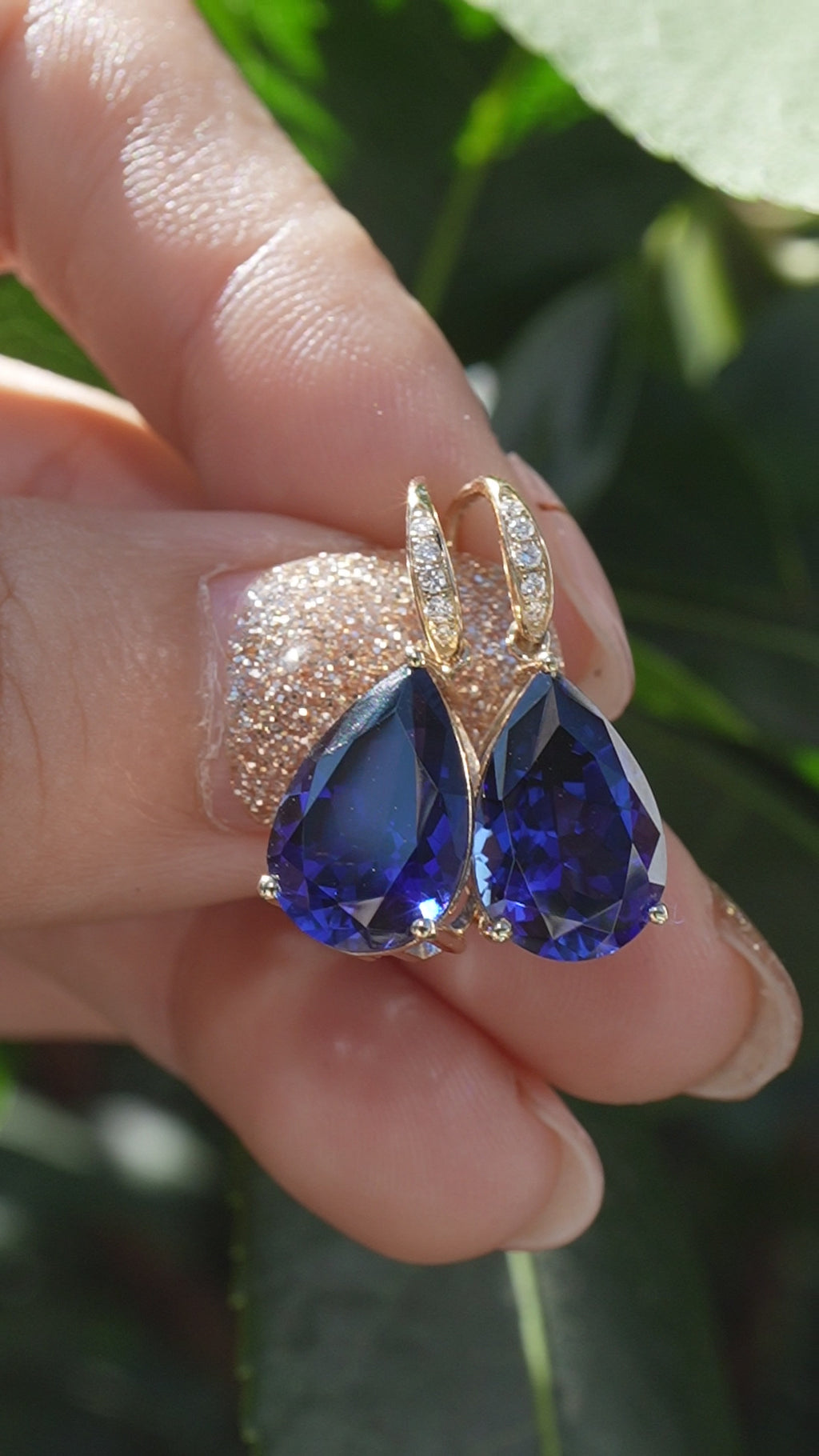 Radiant Pear 8.05ctw Lab-Grown Sapphrie & Diamond Drop Earrings in 14k gold