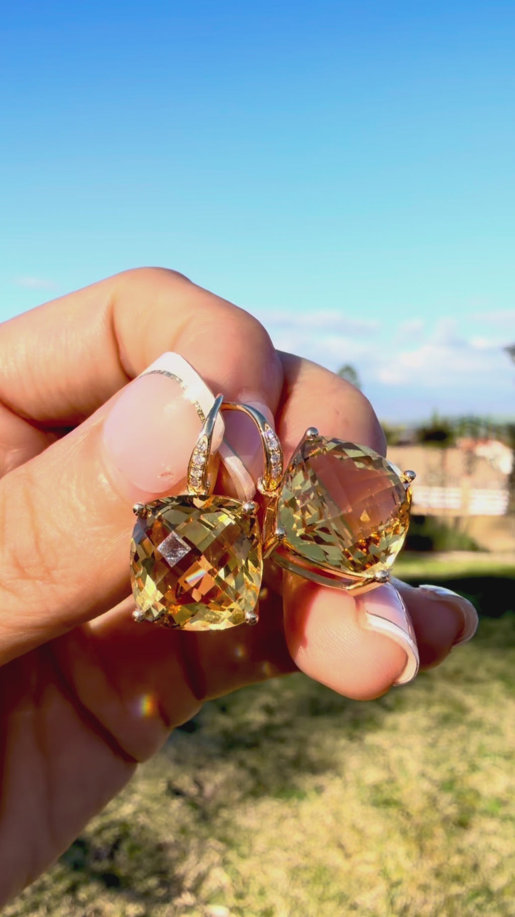 Reflection Cushion Natural 14.05ctw Citrine Diamond Drop Earrings in 14k yellow gold