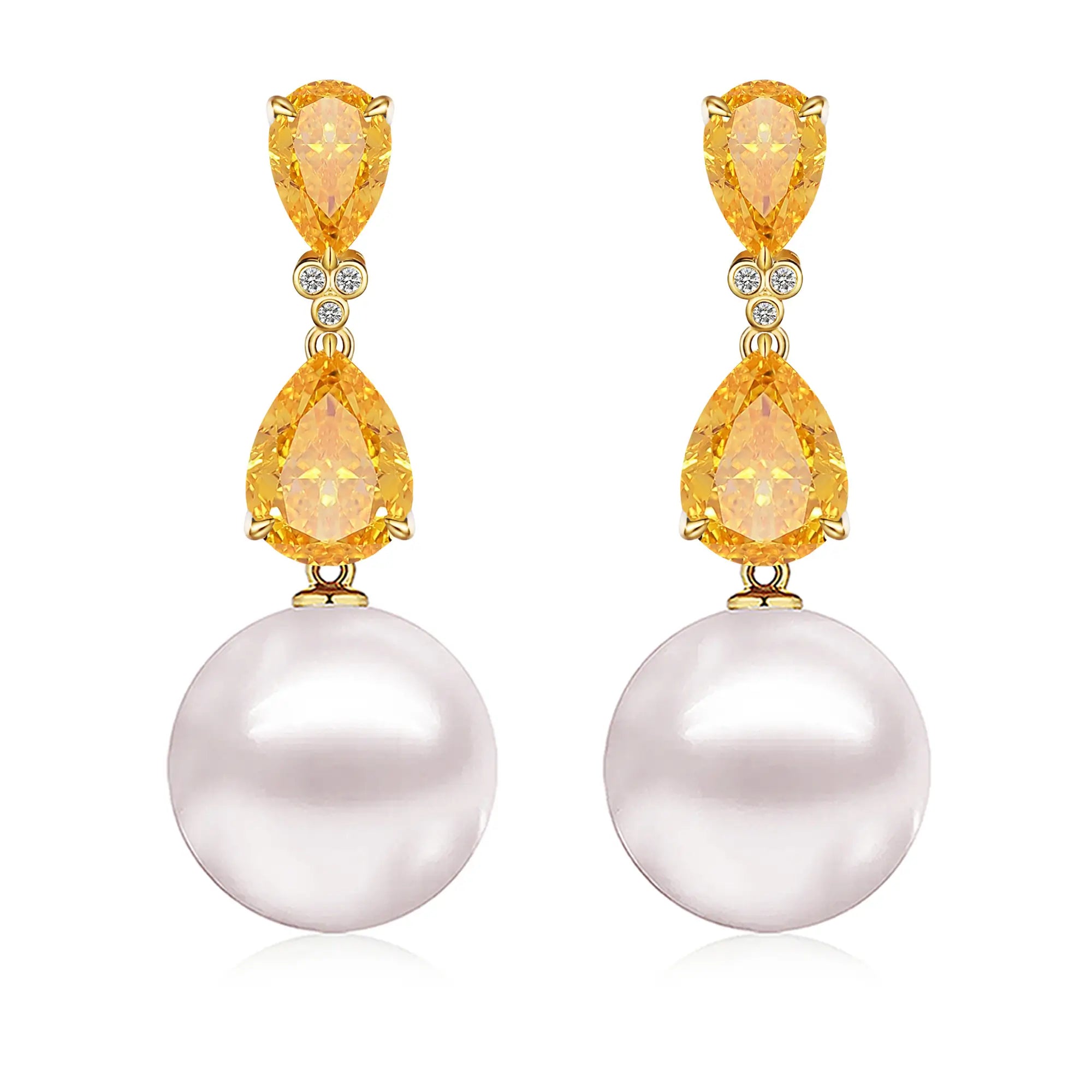 Divina Pear Citrine Diamond Pearl Convertible Drop Earrings