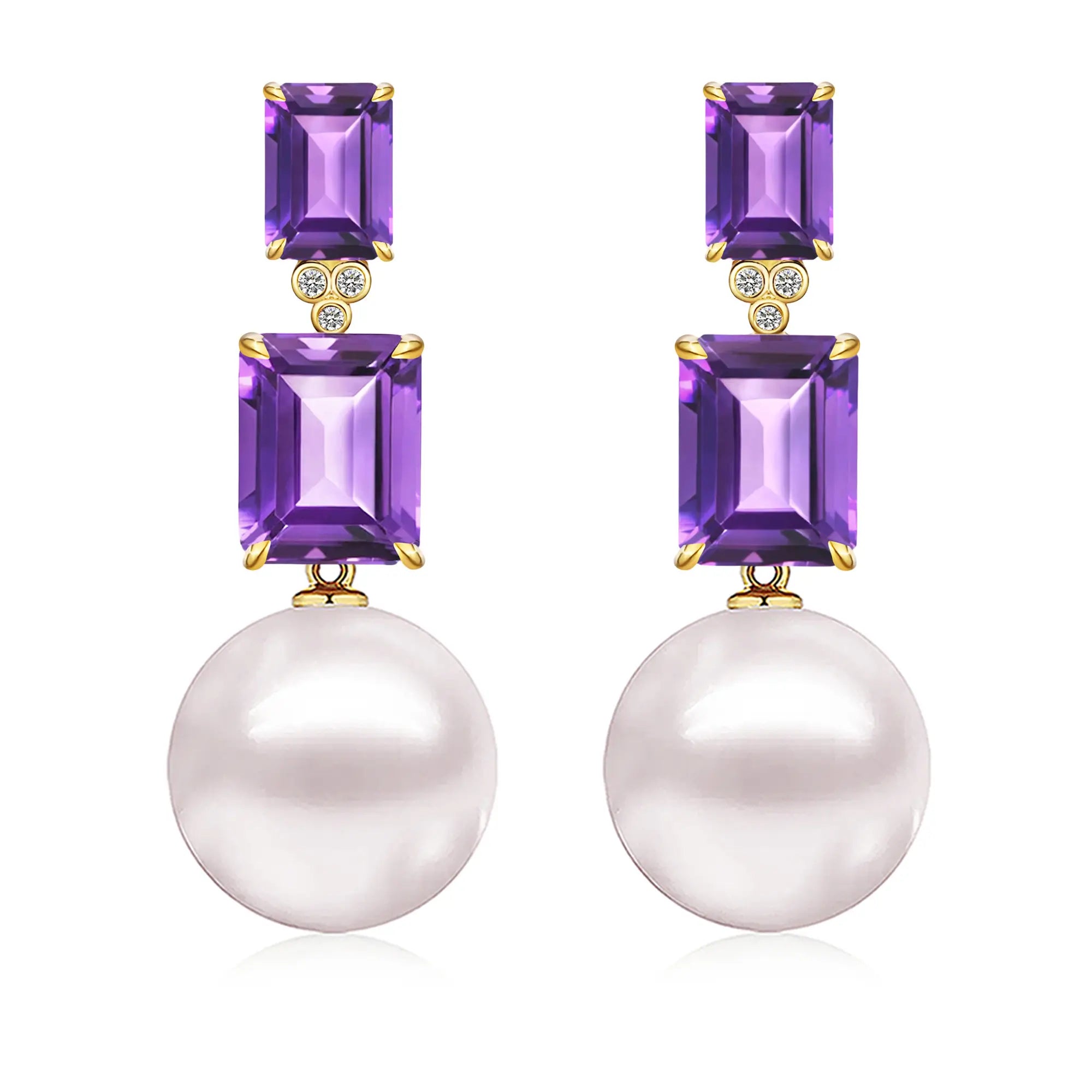 Divina Emerald-Cut Amethyst Diamond Pearl Convertible Drop Earrings