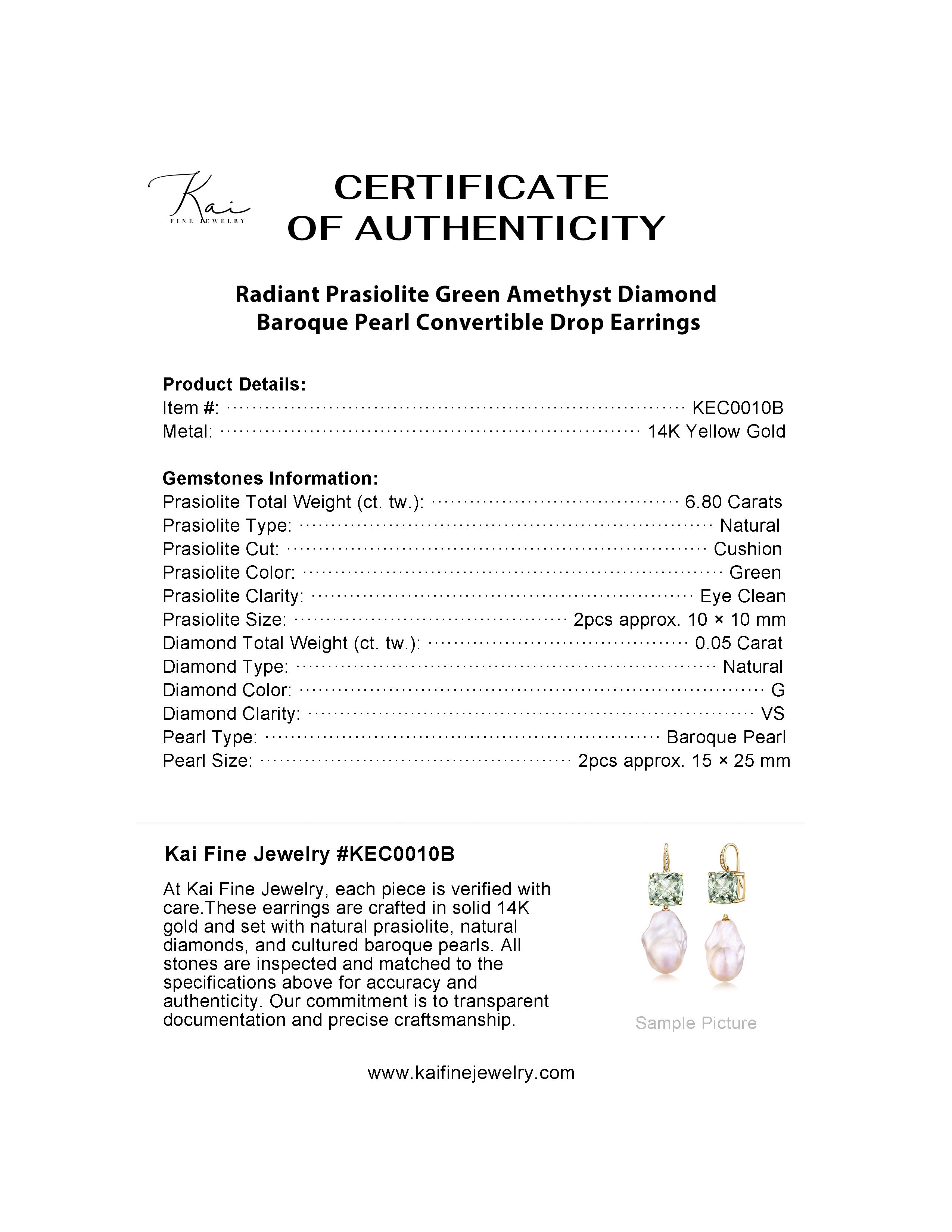 Radiant Prasiolite Green Amethyst Diamond Baroque Pearl Convertible Drop Earrings
