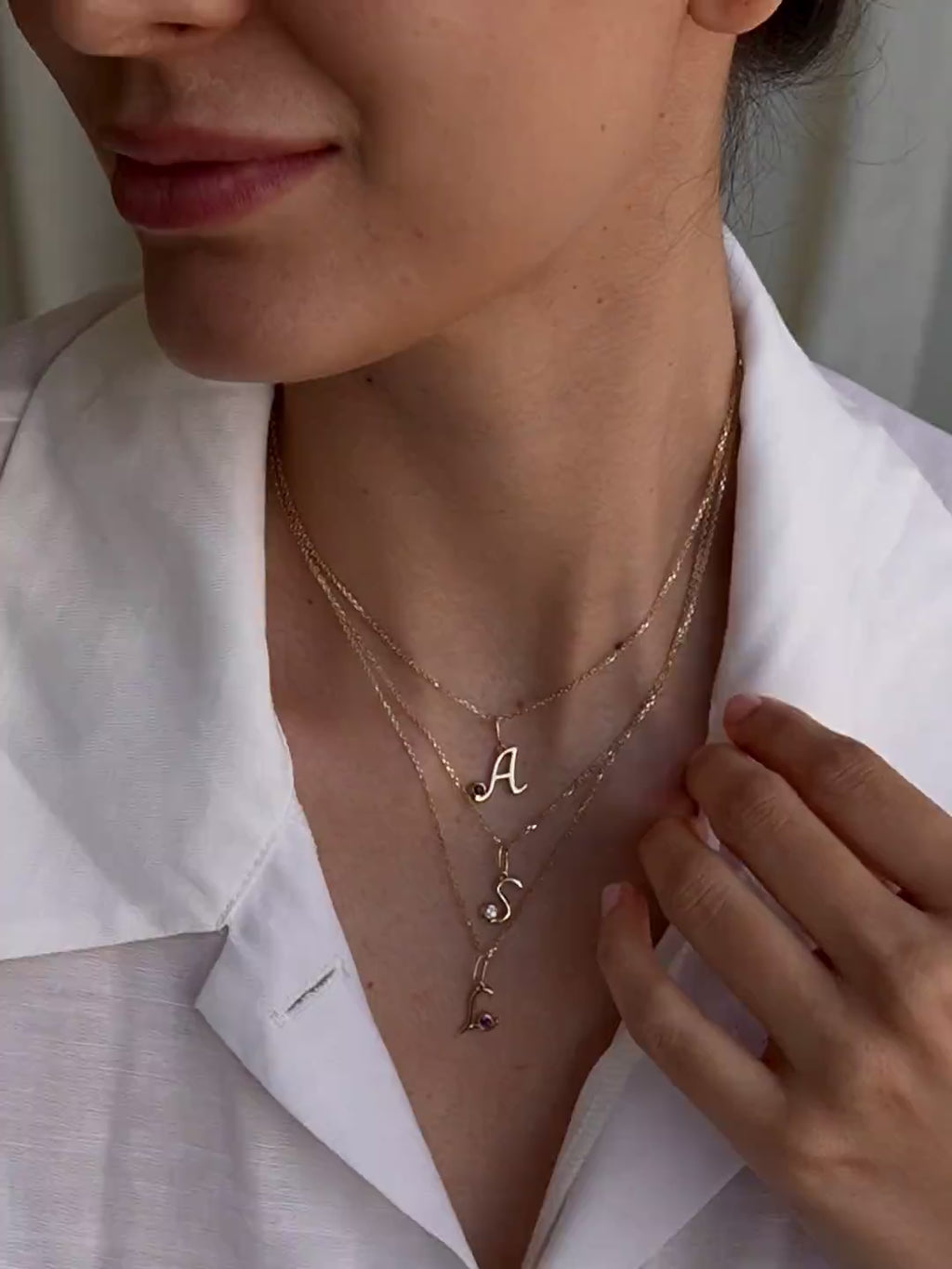 Cursive Initial Birthstone Necklace 14k yellow gold solid gold