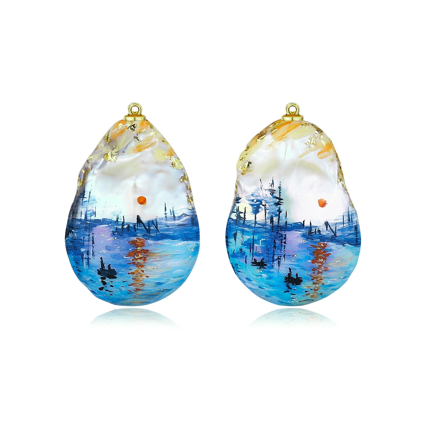 Hand-Painted Impression Sunrise Baroque Pearl Enhancers