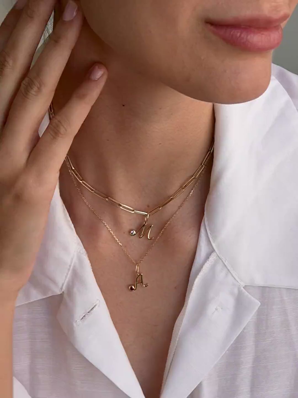 Cursive Initial Birthstone Necklace 14k yellow gold solid gold