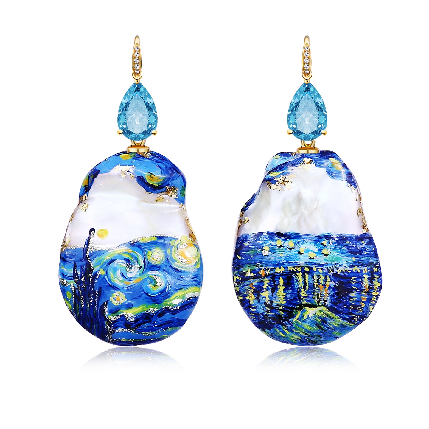 Radiant Pear Topaz Diamond Hand-Painted Baroque Pearl Convertible Drop Earrings