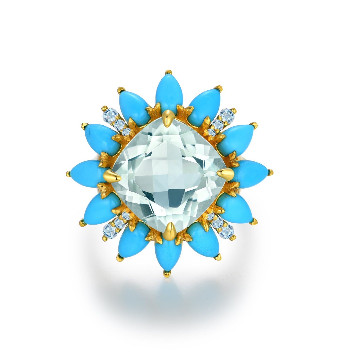 Prasiolite Turquoise Aquamarine Cocktail Ring